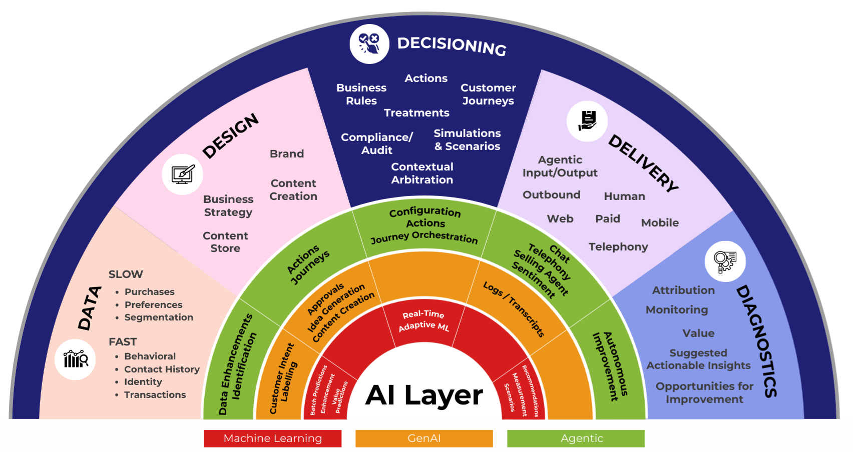 The hyper-personalization architecture reveals how leading organizations orchestrate the essential building blocks of personalization at enterprise scale. The five critical dimensions Data, Design, Decisioning, Delivery, and Diagnostics transform fragmented customer touchpoints into a unified, adaptive customer engagement ecosystem that learns and evolves with every interaction.